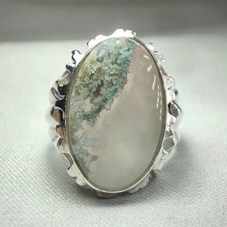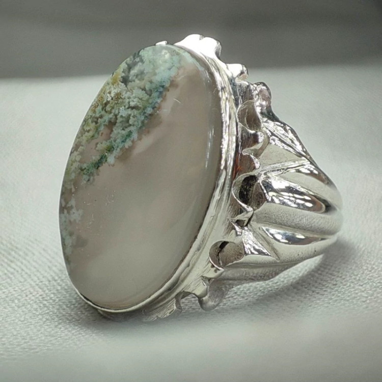 انگشتر عقیق شجر فردوس برفی رکاب نقره عیاربالا بسیار زیبا و خوشدست