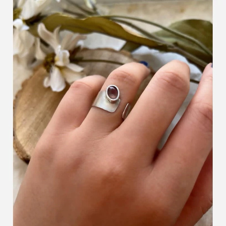 انگشتر کوارتز دودی زنانه کارشده با نقره عیار 925