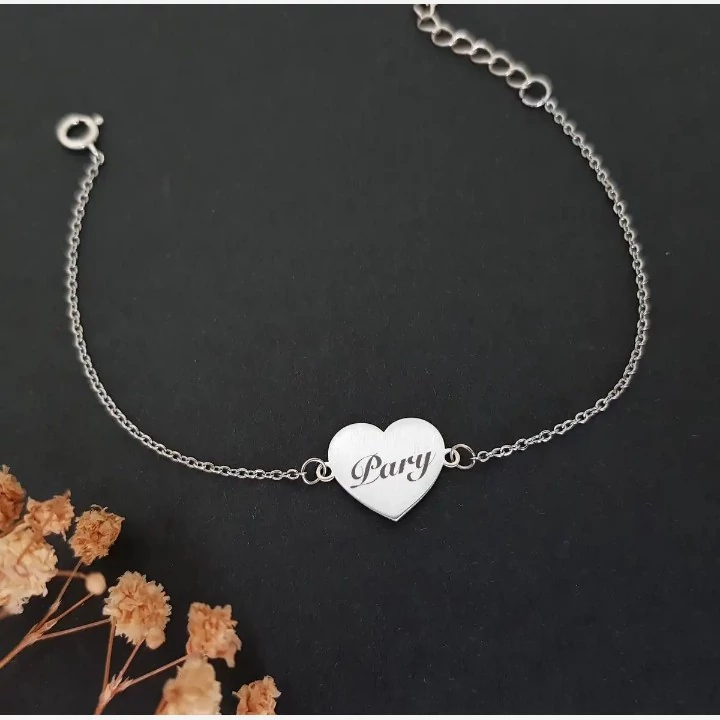 طرح لیزری حکاکی شده اسم پری برروی قلب و زنجیر نقره